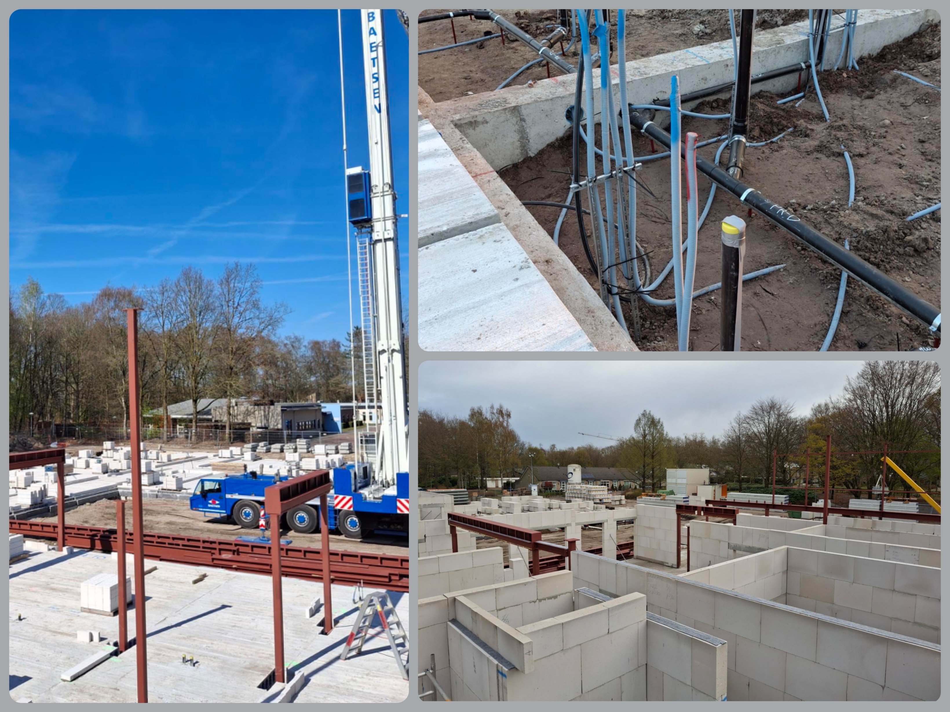 Daarnaast wordt er hard gewerkt aan het aanleggen van de leidingen op het terrein. Deze zorgen voor een goede afvoer van regen- en rioolwater. Een deel van het regenwater gaan we opvangen in een wadi, aan de achterzijde in het bos. Dit is een duurzame oplossing voor het op peil houden van het grondwater.